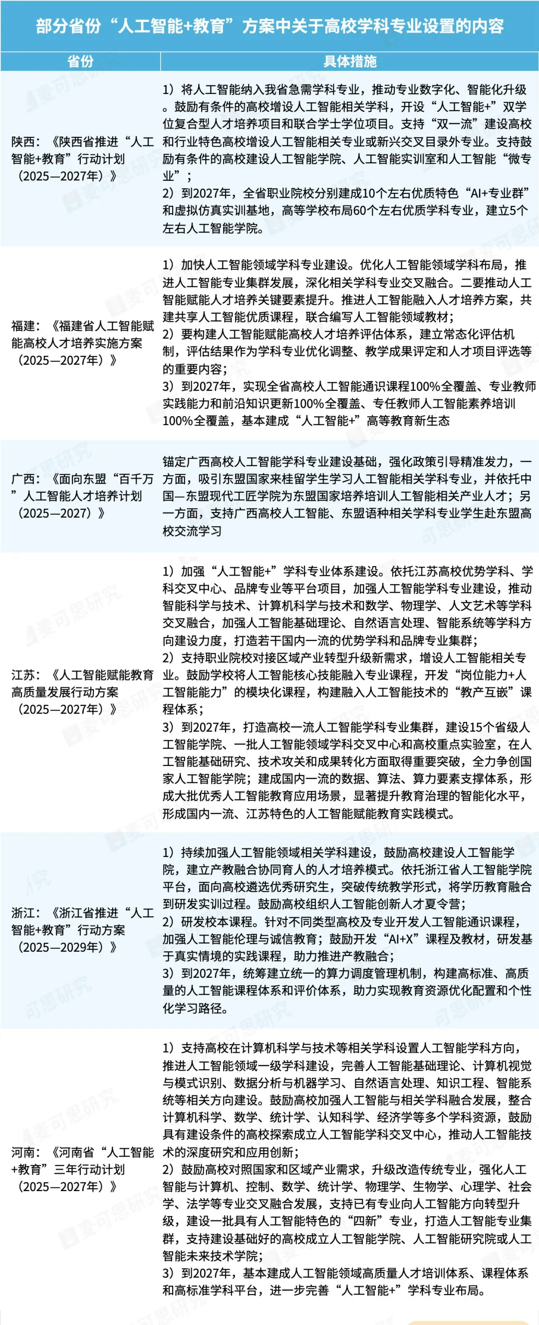 都强调高校该当正在讲授过程中引入人工智能手艺,加强课程系统,如《Python财政数据阐发及使用》课程将编程东西取财政阐发连系;构成“手艺赋能专业、专业反哺手艺”的良性轮回。实现跨校跨企资本共享。成立“产学研用”一体化系统。升级收集根本设备,鞭策“人工智能+X”交叉学科成长,更强化伦理教育取实践立异,《纲要》的发布为处所高校人工智能成长供给了明白标的目的,陕西力求扶植教育大数据核心,如甘肃、河南、浙江、陕西等均要求加强人工智能伦理教育,《金融数据挖掘取阐发》课程通过机械进修模子解析市场趋向,江苏成立省级人工智能行业产教融合配合体,甘肃、河南、浙江、陕西则明白,优化AI伦理案例库,各地沉视管理模式改革,地方、国务院印发的《教育强国扶植规划纲要(2024—2035年)》(以下简称《纲要》)明白提出加速扶植中国特色、世界一流的大学和劣势学科,多省随即出台具体步履方案。